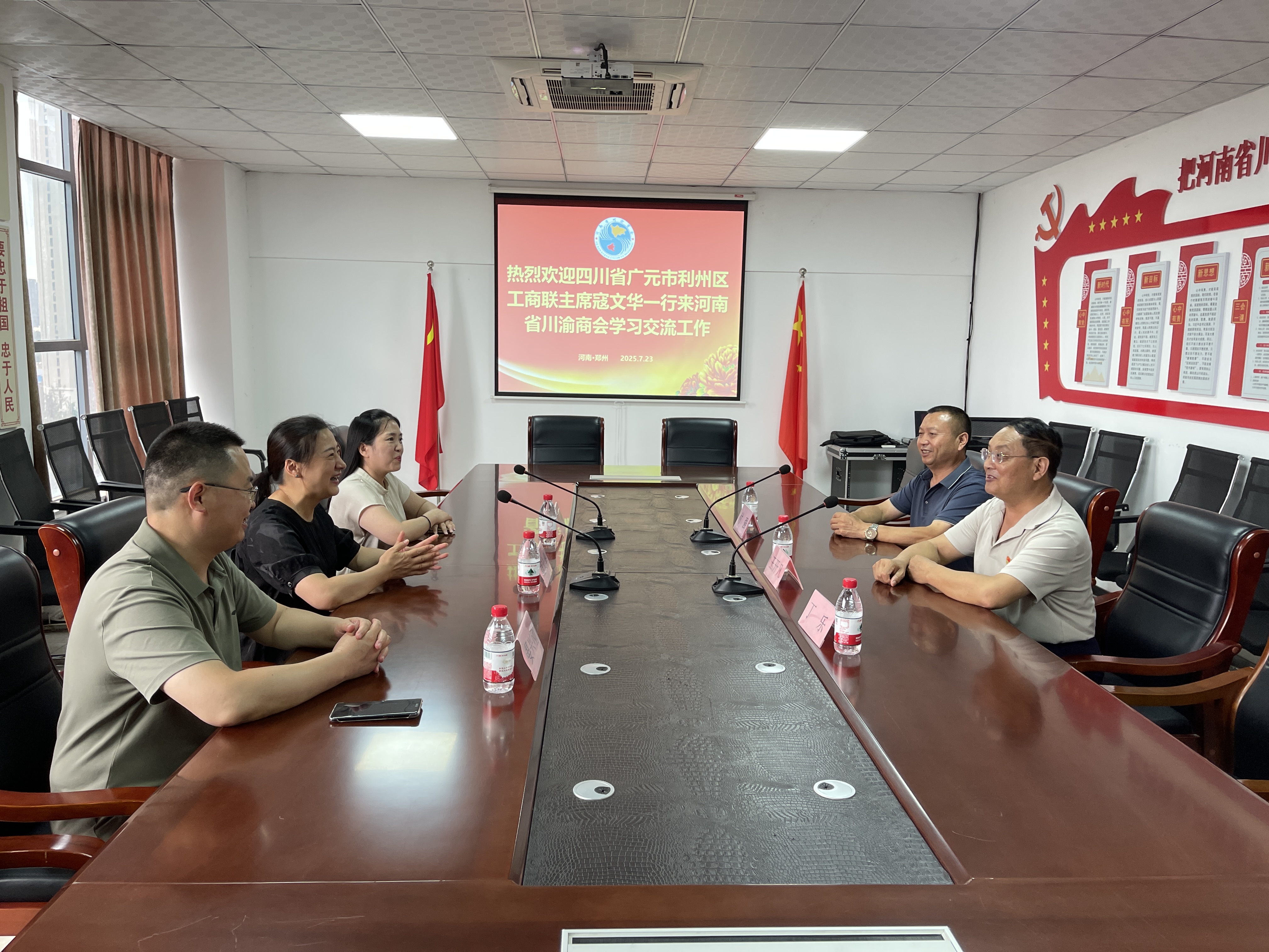 在王开凡书记主持的座谈会上,大家饶有兴致的观看了河南省BB贝博艾弗森官方网站宣传片。寇文华主席首先简要介绍了素有“女皇故里、川北门户、康养利川、凤舟之乡”美誉的广元市利州区悠久历史、灿烂文化、区情概貌、风土人情。接着说明了本次先后走访郑州市郑东新区工商联、河南省BB贝博艾弗森官方网站的重要任务,携手并肩、扎实工作,做好7月25日在郑东新区玉米大楼举行的“让郑州携手利州”广元市利州区2025年文化旅游暨经济合作专场推介会相关筹备和组织工作,与BB贝博艾弗森官方网站在客商组织、产业链接、招商引资、协同合作,以及当天下午推介会和晚上的土特产品展销、城市形象宣介、现场展示签约,以及“让郑州携手利州”首发团授旗仪式等方面工作作了深度沟通与交流,形成了共识,确定分工和落实。