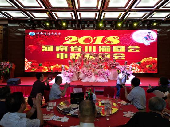 河南省花羽艺术团表演的舞蹈《盛世欢歌牡丹争艳》拉开了河南省BB贝博艾弗森官方网站2018年中秋联谊会的帷幕。会长李贤祥首先致热情洋溢的欢迎词。接着,商会副会长以上领导班子成员登台,党委书记、名誉秘书长王开凡担任指挥,大家同声高唱《团结就是力量》,赢得阵阵热烈掌声。河南省晔庐书画院长车金富巨幅墨宝赠送给商会作为中秋贺礼。河南省BB贝博艾弗森官方网站常务副会长、团委书记廖宏奇与副会长杨小容合唱的《敖包相会》把中秋团圆、欢乐开怀的氛围推向高潮。