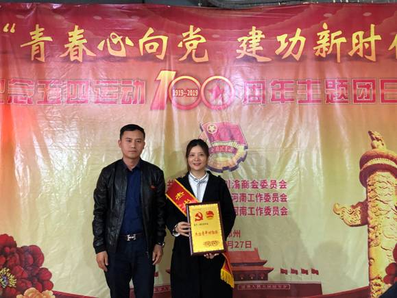 在全体人员挥舞小红旗、高唱《中国共青团团歌》欢快激情的氛围中拉开了主题团日活动的帷幕。谢辉、叶正军分别宣读了关于表彰优秀团委书记的决定和关于授予谢彩英同志“杰出青年功勋奖”荣誉称号的决定。在飞舞的礼花和欢快的乐曲声中,河南团省委部长程腾飞为受奖人员颁奖。