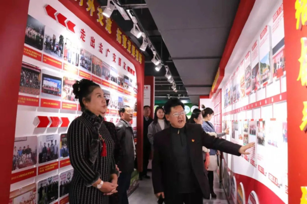 ▲豫清协文化长廊参观薛会长带领学习十九届五中全会精神