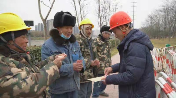 10日抵达郑州时,卢戈副主任一行首先来到常务副会长唐六平创办的企业——河南兴邦电力工程有限公司位于郑州市郑东新区的“太行变”输变电线路综合改造工程工地,看到工人们正在高压变电铁塔上施工作业,卢戈副主任一行啧啧称赞川籍农民工拼搏奉献的可贵精神。借助工休间隙时间,大家围拢一圈,在听取常务副会长唐六平简要汇报后,卢戈副主任讲了话,他声情并茂、亲切暖心地表达了家乡党委政府和父老乡亲对在豫打拼川籍农民工的关爱之情,并与大家促膝交谈。在与眉山市农民工刘长根、李玉龙、王国华和广安市农民工张四润、龙成丰、贺珍、秦高峰等交谈时,卢戈副主任嘘寒问暖、关怀备至,既关心他们在河南的工作情况,也询问他们家庭情况,了解他们大约什么时候回老家过年和今后的打算。在与凉山州昭觉县沙玛作且、沙玛作哈等11个彝族农民工交谈时,卢戈副主任、黄厚毅处长摸着他们较为单薄的衣服,询问他们在河南打工多少时间,生活是否习惯,有什么困难,挣到了多少钱,嘱咐他们学技术学文化、积极为家乡脱贫致富贡献力量。针对当前新冠疫情现况,卢戈副主任希望大家认真搞好疫情防控,祝愿大家工作愉快,幸福安康。