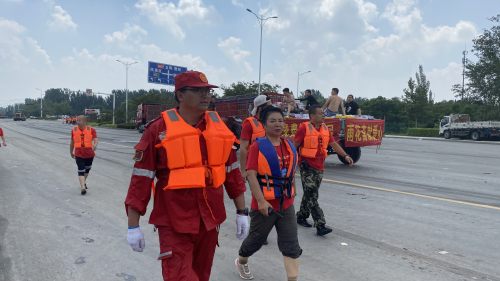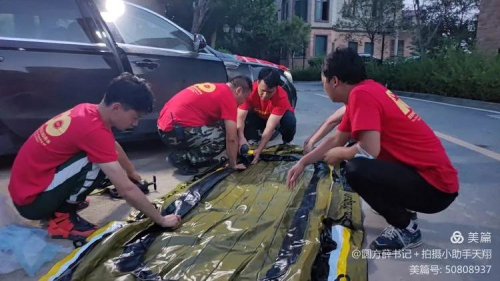 团队到达卫辉后在当地退役军人事务局副局团队的指引下前往当地孟姜女河附近,最大受灾群众集聚地进行交接班,和物资转运工作。