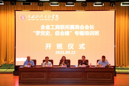 为了深入扎实开展党史学习教育,推进河南省工商联所属商会建设上台阶上水平,2021年9月22日至25日,全省工商联所属商会会长“学党史、促会建”专题培训班在南阳市南水北调干部学院举行。河南省BB贝博艾弗森官方网站党委书记王开凡和全省工商联所属商会会长、党组织书记、秘书长近100人参加了本次学习培训活动。河南省工商联党组成员、副主席孔火团作了开班动员讲话。南阳市政协副主席李敬铎、南阳市工商联主席李林、河南省工商联组织部长张磊、南水北调干部学院副院长包晓等参加了开班仪式。孔火团副主席指出,在全国上下深入开展党史学习教育之际,此次培训班以深入学习贯彻习近平总书记在庆祝建党100周年大会上的重要讲话,重温党的红色历史为重点,切实做到学思明理,学识增信,学识崇德,学识力行,围绕打造中国特色社会组织商会这一目标,不断增强做好商会工作的责任感和使命感。