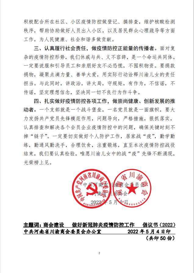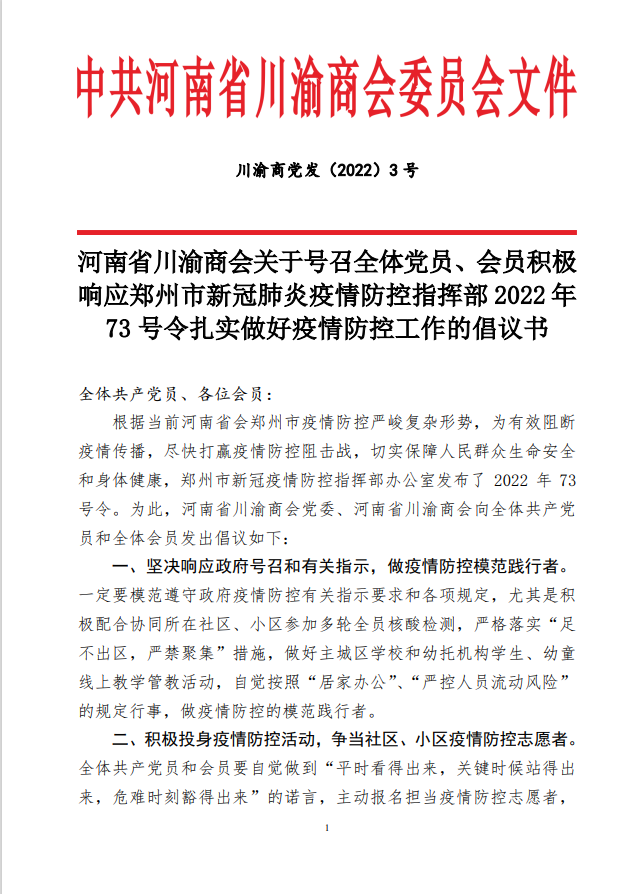 您所在的位置 首页 - 新闻中心 - 河南省BB贝博艾弗森官方网站关于号召全体党员、会员积极响应郑州市新冠肺炎疫情防控指挥部2022年 73号令扎实做好疫情防控工作的倡议书