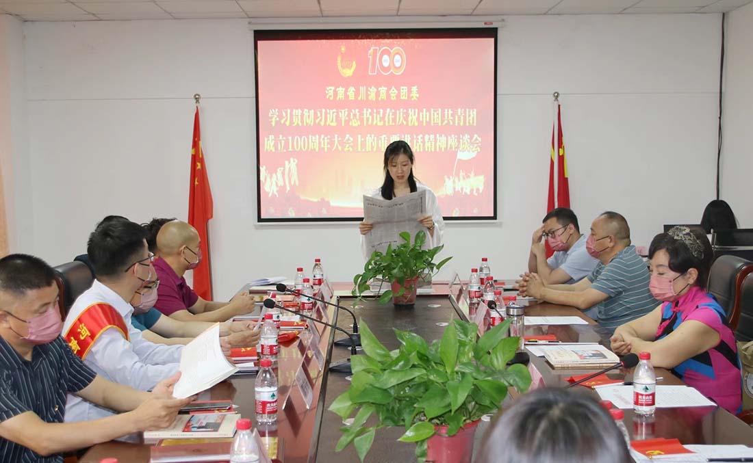 河南省BB贝博艾弗森官方网站团委学习习近平总书记在庆祝中国共青团成立100周年大会上的重要讲话精神座谈会,在全体与会人员高唱中华人民共和国国歌声中开始。座谈会上,河南省BB贝博艾弗森官方网站团委副书记兼办公室主任、BB贝博艾弗森官方网站副秘书长、党委办公室主任丁乐领学了习近平总书记在庆祝中国共产主义青年团成立100周年大会上的重要讲话精神。