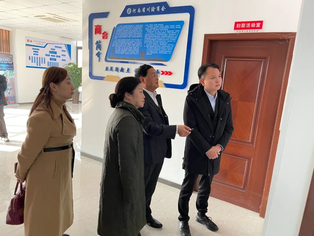 当天下午,陈小东部长一行来到河南省BB贝博艾弗森官方网站,受到热烈欢迎。在党委书记、名誉秘书长王开凡和商会领导成员的陪同下,陈小东部长一行参观了BB贝博艾弗森官方网站办公场所,观看了BB贝博艾弗森官方网站文化墙、第四届领导班子成员形象展示,参观了商会党团活动室、妇联活动室、党委工作室、党校和秘书处等场所。