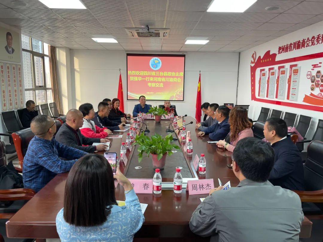 2023年4月9日至11日,四川省三台县政协党组书记、主席贺强华带领三台县委常委、统战部部长文远,三台工业园区党工委书记赵锦涛,三台县总工会党组书记、常务副主席谢进甫,三台县妇联主席邹莉,三台县委组织部副部长、县人社局局长蒋勇,县政协副秘书长、办公室主任陈杰,三台县北坝镇人民政府镇长曾春,三台县西平镇人民政府镇长周林杰,三台工业园区管委会副主任邓成志,三台县招商顾问张强等一行来到河南省BB贝博艾弗森官方网站、到河南西平县、河南项城市等地调研工作、考察项目。河南省BB贝博艾弗森官方网站党委书记、名誉秘书长王开凡,常务副会长、秘书长沈仕伟,常务副会长杨小容、杨明久、唐六平,常务副秘书长付强,副秘书长兼办公室主任丁乐等陪同了本次活动。