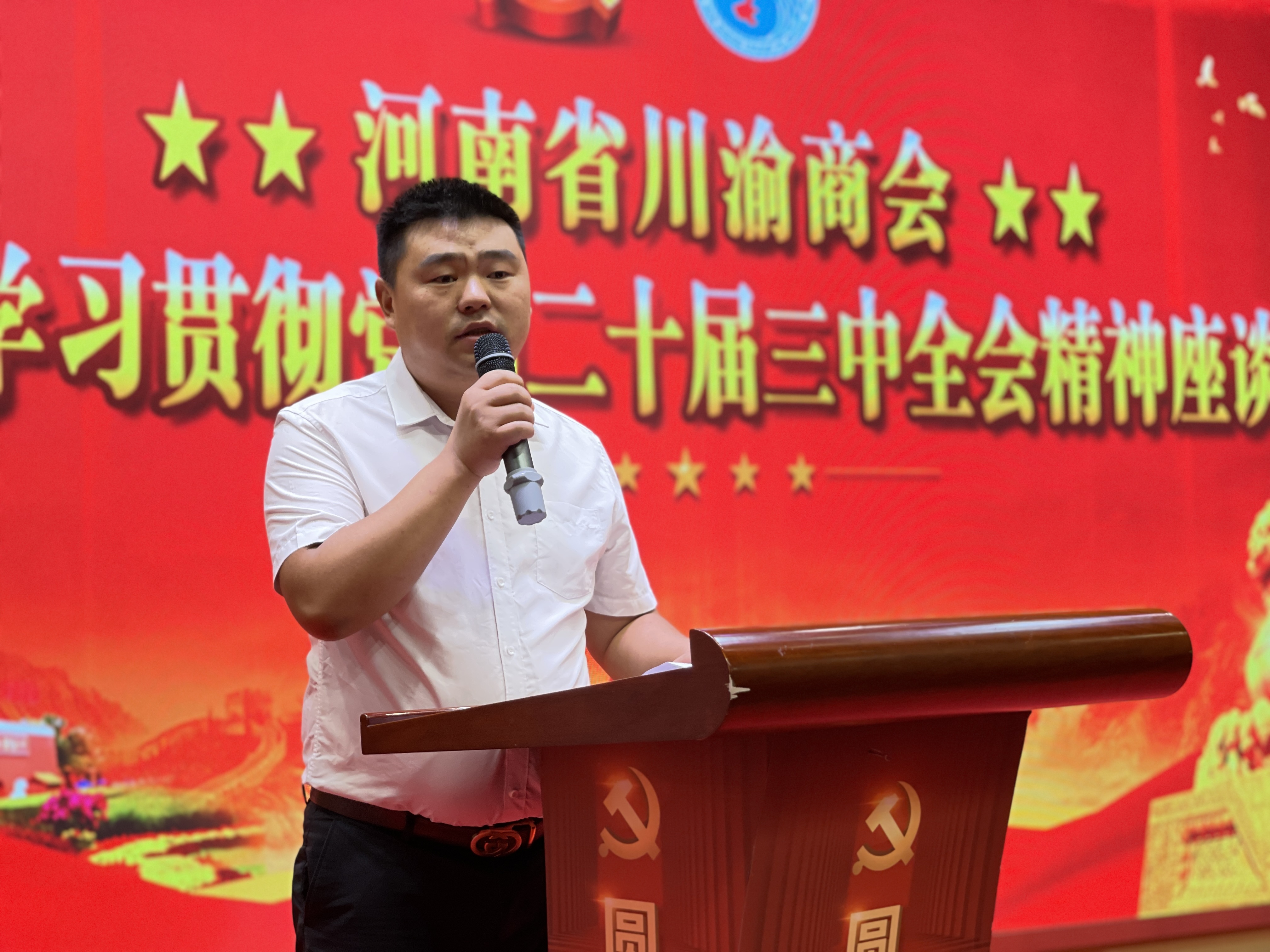河南省BB贝博艾弗森官方网站副会长、河南省BB贝博艾弗森官方网站团委常务书记、郑州天府茗家商贸有限公司董事长张杰分享了学习贯彻党的二十届三中全会精神体会。