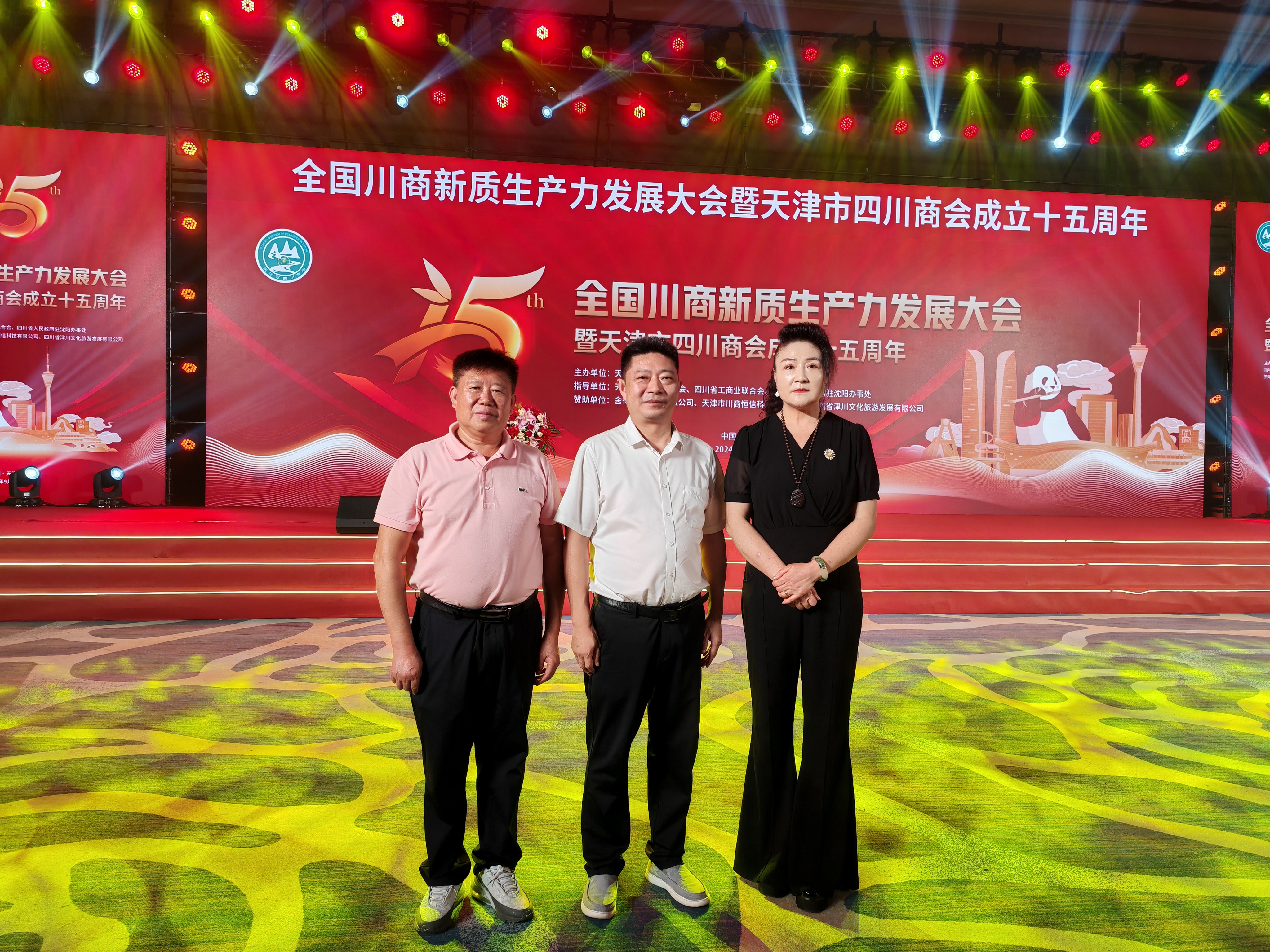 2024年9月8日下午,全国川商新质生产力发展大会暨天津市四川商会成立15周年庆典在天津富力万达文华酒店隆重举行。天津市委原常委、市政协原副主席、市老促会会长刘长喜,天津市委统战部副部长、市工商联党组书记郝树民,四川省工商联党组成员、副主席郑宗强,四川省经合局一级巡视员易旸,四川省驻沈阳办事处等津川两地领导出席庆典。此外,四川省乐山市、绵阳市、巴中市政府及有关部门及区县领导,天津市河东区、津南区、宁河区、宝邸区政府领导,四川省与各地州市驻外办代表,川商总会、全国各地四川商会、天津市异地商协会会长、秘书长,天津市四川商会第二届会长税代山、第三届会长王小东,商会顾问张建军、伍前发、董方林、耿伟、刘学铸,媒体代表、知名企业家、在津川渝老乡、各界友好人士及商会全体会员等400余人欢聚一堂,共同见证了庆典盛况。河南省BB贝博艾弗森官方网站秘书长沈仕伟,执行秘书长戚太明,常务副会长、郑州市绵阳商会会长杨小容受邀参加此次庆典活动。