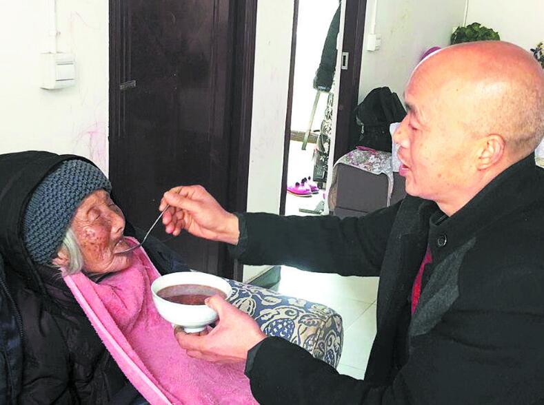 张培军知道母亲向来爱干净,便每天及时给母亲洗脸、洗澡、换衣服、清理口腔。“小的时候,母亲就是这样照顾我的,现在母亲病了,把母亲照顾好是我应该做的。”张培军说,母亲现在就像一个需要被照顾的孩子,一刻也离不开他。